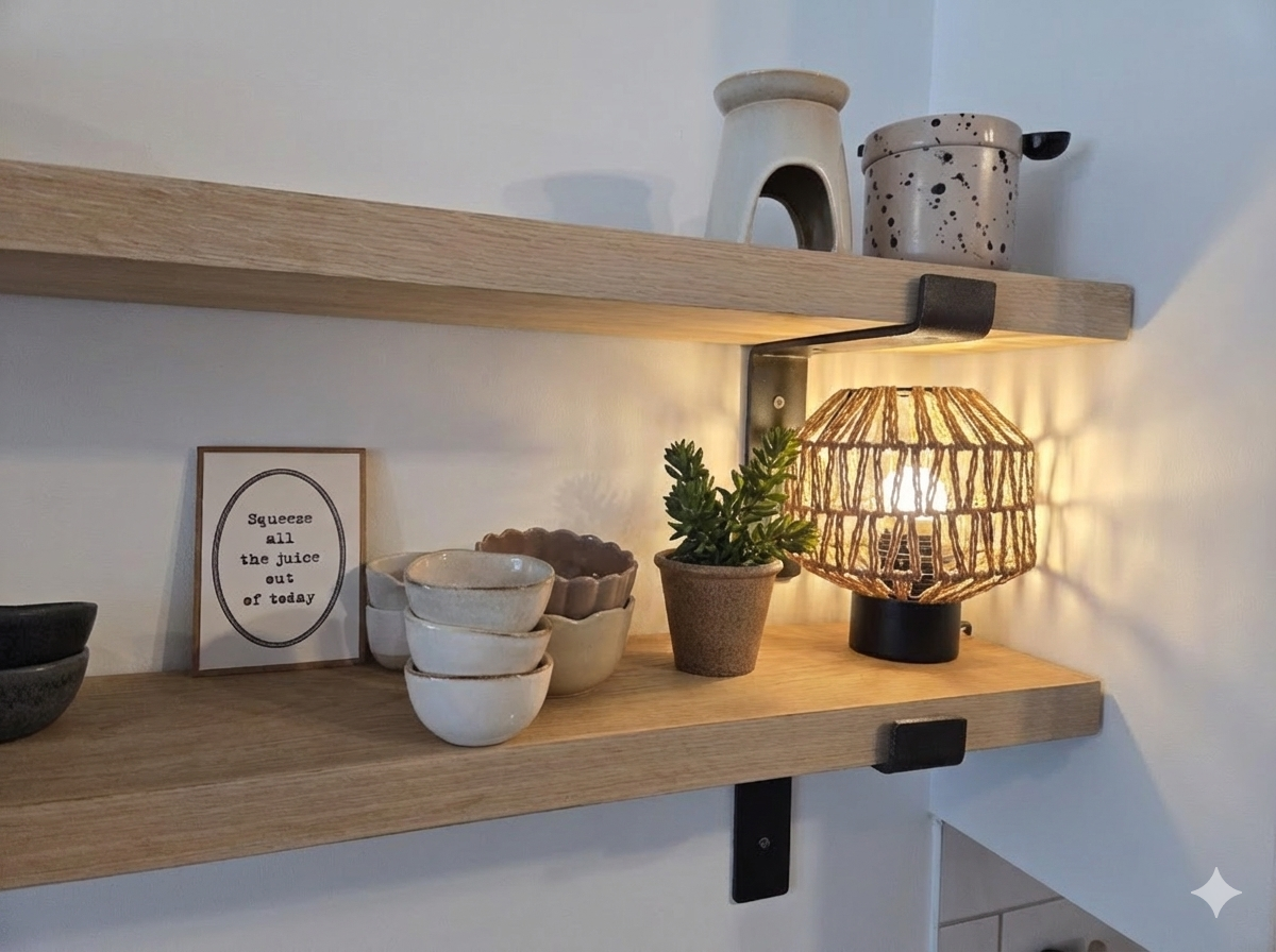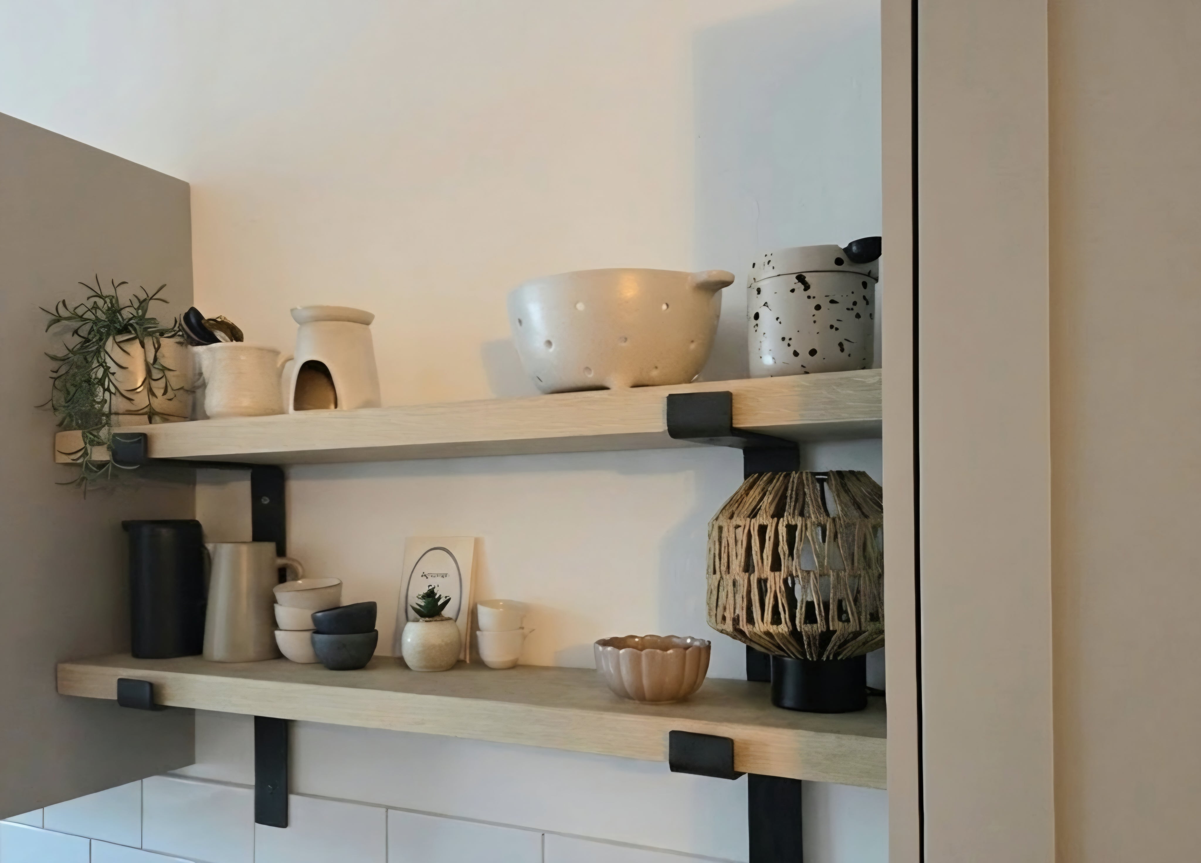 Oak Shelf Lipped Steel Brackets 15 or 20cm