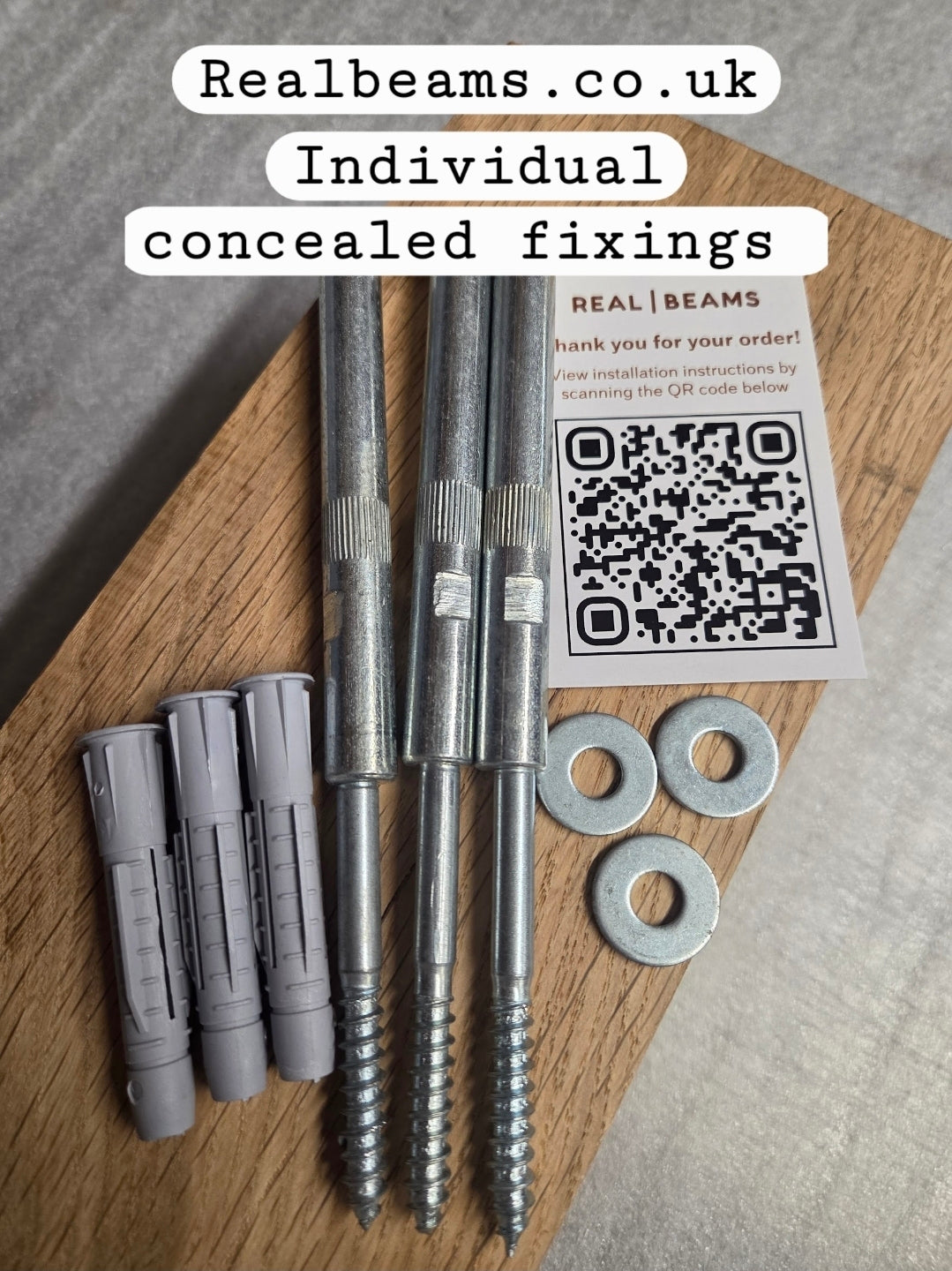 We offer 2 fixing options : individual concealed fixings or wall plates, both of which are invisible once installed and come with wall plugs.